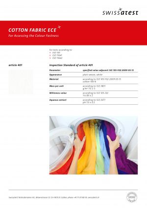 Flyer: 401, Baumwollgewebe, ECE und ISO 105-F02